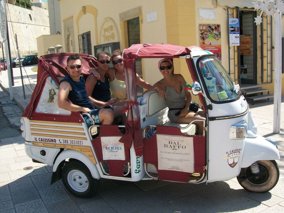 Grazie a Pino e Diego, ci hanno fatto scoprire le bellezze e gli odori di Otranto. Il Calessino, questo strano mezzo , che si infila nei percorsi più angusti ma ameni del territorio d’Otranto. Pino , guida esaustiva del luogo e carico di simpatia. Ti ricorderemo con affetto. Grazie.